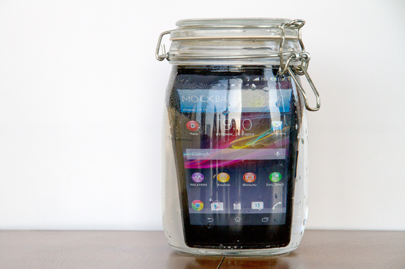 Одна из ключевых особенностей аппарата – влагозащита. Смартфон защищён по стандарту IP-57 (пыле- и влагозащита), что и стало причиной скрытия всех разъёмов под заглушками. В редакции ТАСС-Телеком в ходе тестирования Xperia Z был погружён в банку с водой на несколько минут. В воде смартфон оставался включенным, после завершения водных процедур никаких проблем замечено не было. Аппарат действительно можно смело мыть под струёй воды или звонить, стоя под проливным дождем.
