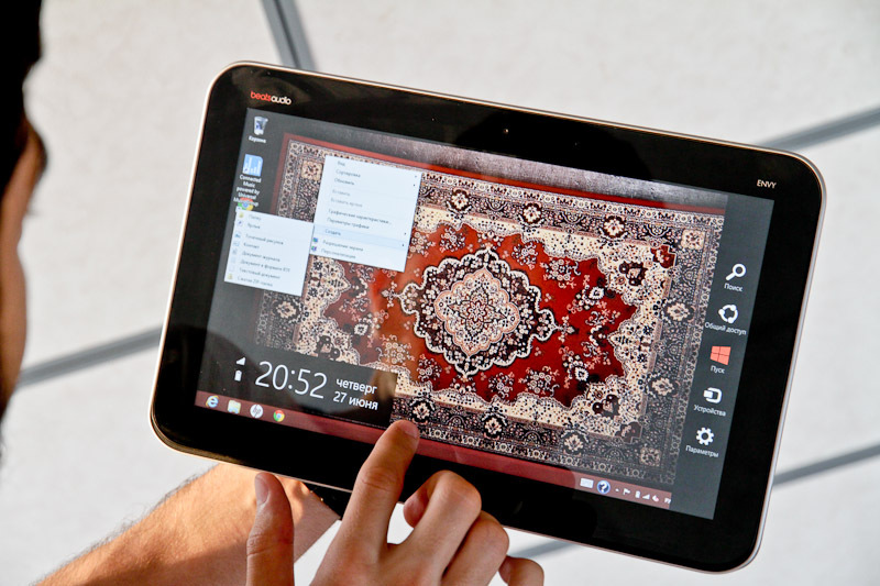 В Envy x2 используется двухъядерный процессор Intel Atom Z2760 с тактовой частотой 1,8 ГГц. Аналогичное решение, с аналогичной Windows 8 используется в другом трансформере — Acer Iconia W510, который зарекомендовал себя, в первую очередь, двумя вещами — хорошей для мобильного устройства производительностью и очень хорошим временем работы. Всё то же самое можно смело утверждать и про устройство от HP. Свою роль повседневной машинки Envy x2 выполняет превосходно. О скорости работы системы говорить смысла нет, поскольку речь идёт о Windows 8, которая потребляет ещё меньше ресурсов, чем Windows 7. В этом плане всё так же хорошо.