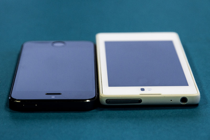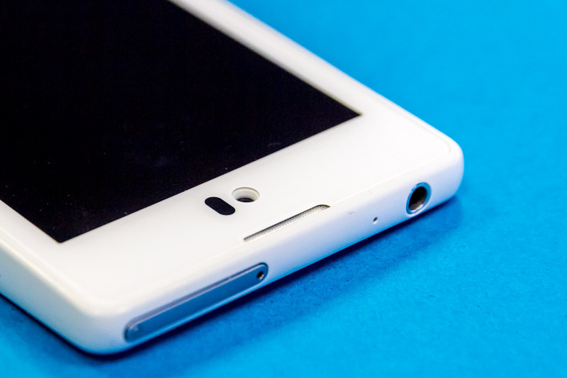 Если не знать, что перед вами лежит YotaPhone, то можно и не догадаться о происхождении аппарата — настолько безликим получился корпус смартфона (если смотреть строго на экран). Единственное, что на первый взгляд отличает во внешнем виде от других смартфонов — это небольшой, но явный изгиб задней крышки к верхнему торцу смартфона. Сама эргономика корпуса в целом хороша, но есть несколько нареканий, главное из которых — расположение клавиши питания. Она находится на верхнем торце и объединена с лотком для SIM-карт. Чтобы нажать на неё, приходится перехватывать смартфон, а учитывая гладкий материал торцов аппарата, при таких манипуляциях аппарат легко можно уронить.