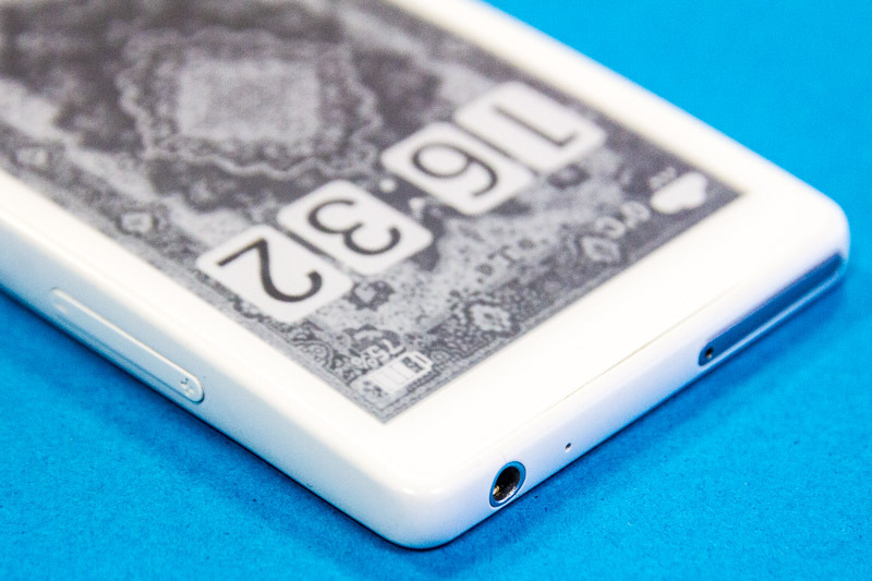 Однако в целом это очень приятный аппарат, корпус которого выполнен из трёх разных по ощущениям материалов — гладкое стекло на передней панели, гладкий, но не глянцевый, пластик на торцах и шероховатое покрытие e-Ink-дисплея сзади.