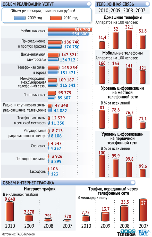 Аналитики ТАСС-Телеком прогнозируют рост телекоммуникационного рынка в течение ближайших 5 лет в среднем на 7-8% в год. Таким образом, к 2015 году объем рынка достигнет 1,8-2 трлн. рублей.