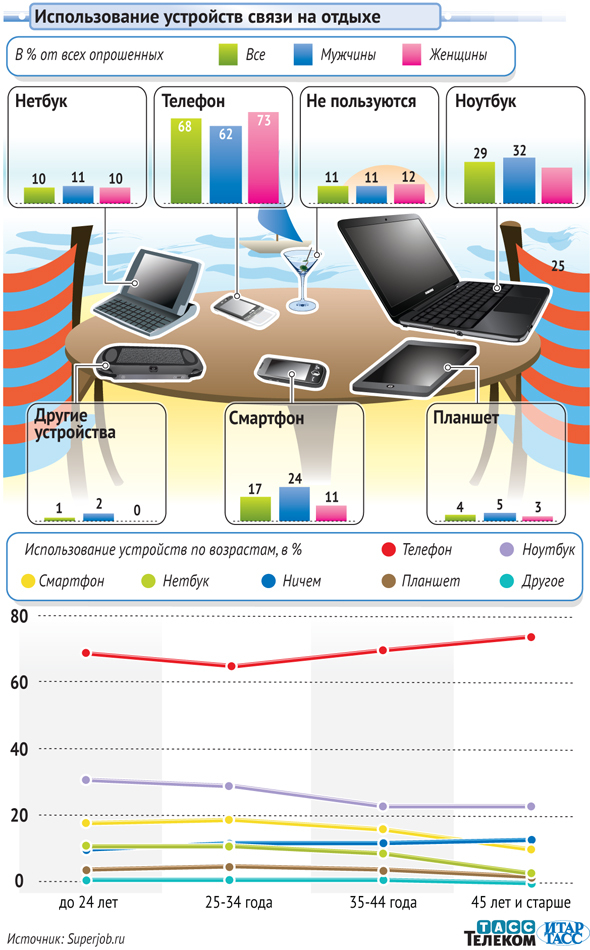 Исследовательский центр рекрутингового портала Superjob.ru выяснил, что большинство россиян остаются на связи даже во время отпуска.