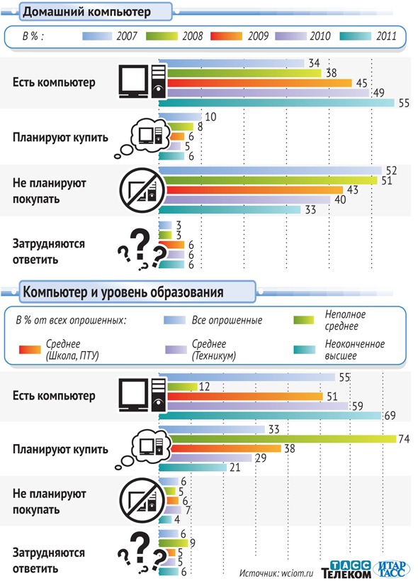 По случаю 30-летия со дня выпуска первого персонального компьютера, Всероссийский центр изучения общественного мнения представил данные о том, у скольких россиян уже есть компьютер, и сколько наших сограждан обходятся без этого устройства.