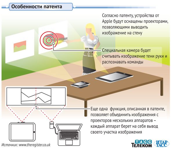 Apple собирается запатентовать совершенно новый тип пользовательского интерфейса, сочетающий черты проектора и смартфона, а также распознающий жесты.