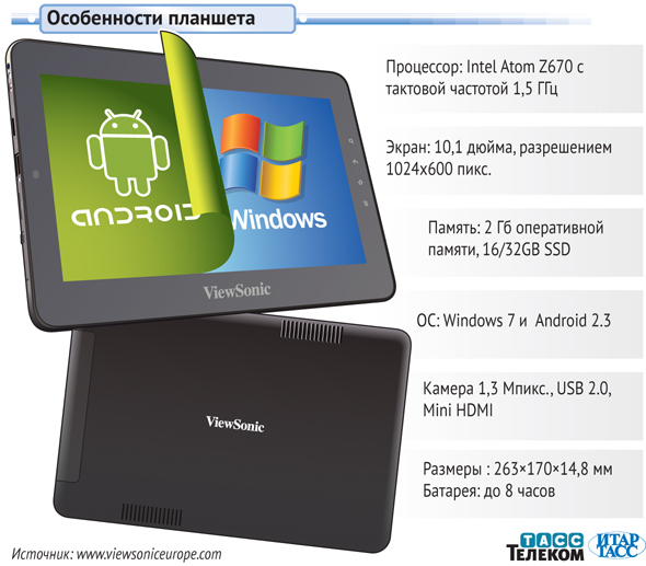 10-дюймовый планшет ViewSonic ViewPad 10pro поступит в продажу до конца августа. Его особенность заключается в том, что он работает как на Windows 7, так и на Android 2.3.