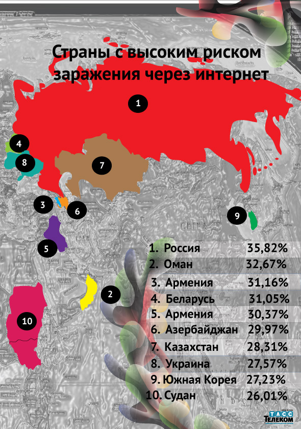 По итогам августа "Лаборатория Касперского" составила рейтинг стран, где пользователи подвергаются наибольшему риску заражения через интернет.