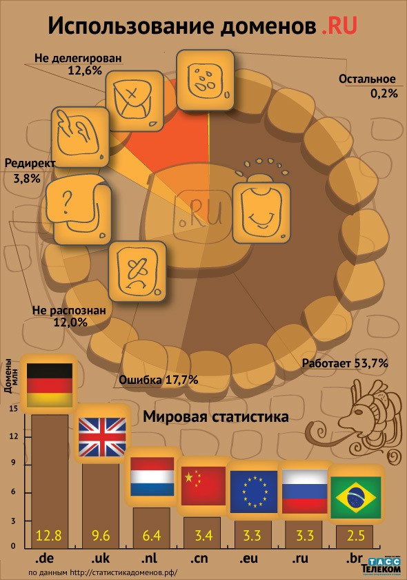 Интернет-ресурс "Домены России" представил статистику использования доменов в зоне .RU.