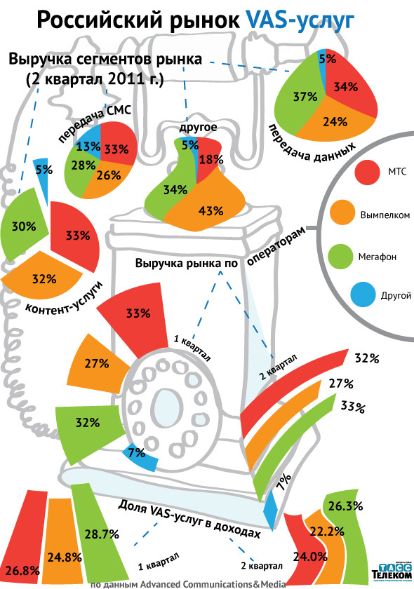 AC&M представил отчет о состоянии рынка VAS в сетях сотовой связи в России по итогам 2 квартала 2011 года. Данные этого отчета отличаются от данных официальной отчетности операторов. По словам представителя AC&M, компания использует унифицированный подход к определению выручки от дополнительных услуг у операторов "большой тройки".
