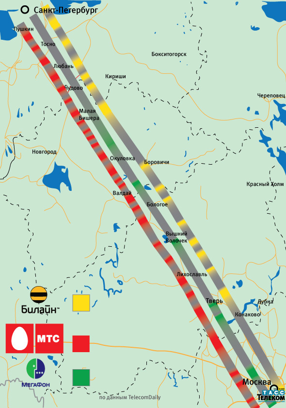 Cпециалисты ИАА TelecomDaily провели замеры качества и территории покрытия операторами "большой тройки" двух основных железнодорожных магистралей страны - Октябрьской и Горьковской. По этим маршрутам курсируют скоростные поезда "Сапсан".