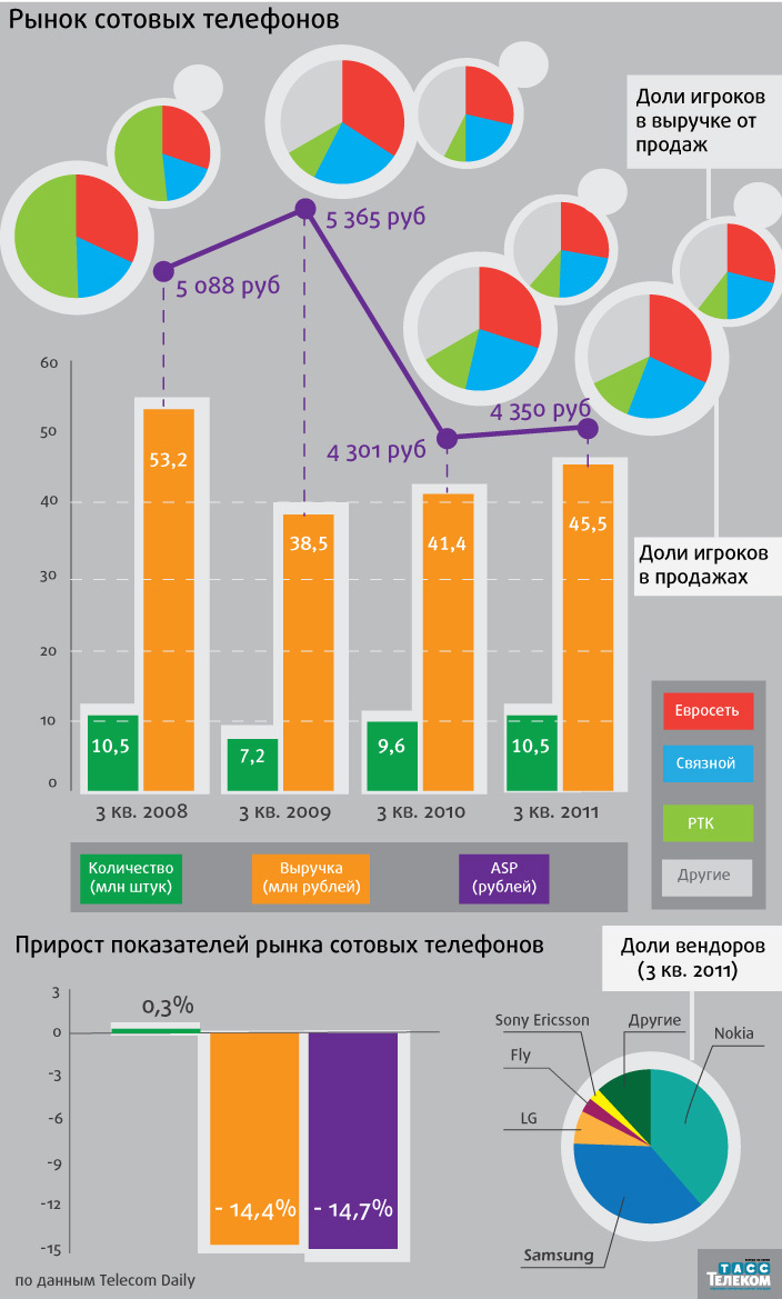 Информационно-аналитическое агентство Telecom Daily опубликовало данные по российскому рынку мобильного ритейла за III квартал 2011 года.