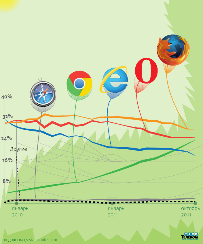 По данным Stat Counter, браузер Chrome от Google теперь пользуется большей популярностью, чем Mozilla Firefox.