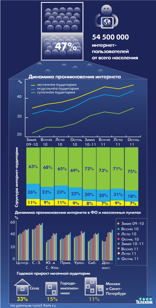 Фонд "Общественное мнение" выяснил, как и в каких регионах России изменилось проникновение интернета.