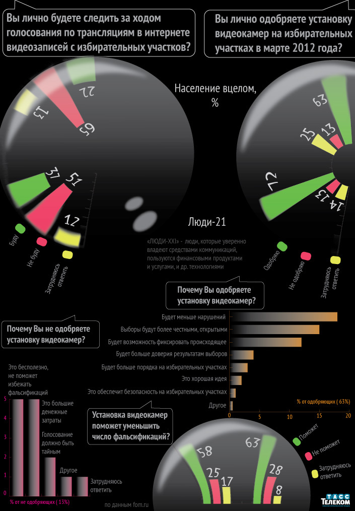 Фонд "Общественное мнение" выяснил, что по мнению россиян установка веб-камер на избирательных участках поможет сделать предстоящие выборы более честными. Около четверти наших сограждан собираются смотреть трансляцию с избирательных участков в Интернете.