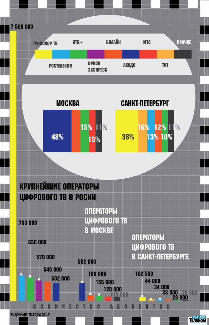 Информационно-аналитическое агентство Telecom Daily подвело итоги развития рынка платного цифрового ТВ в России в целом, а также в Москве и Санкт-Петербурге.