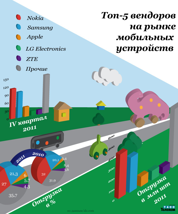 Консалтинговая компания International Data Corporation назвала лидеров рынка мобильных устройств 2011 года.