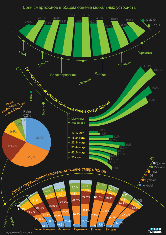 Аналитическая компания ComScore опубликовала отчет "Мобильное будущее в фокусе", в котором представила статистику европейского рынка смартфонов.