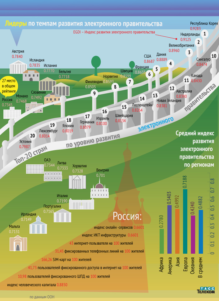 В новом рейтинге развития электронного правительства, опубликованном ООН, Россия поднялась с 59-ого сразу на 27-е место.