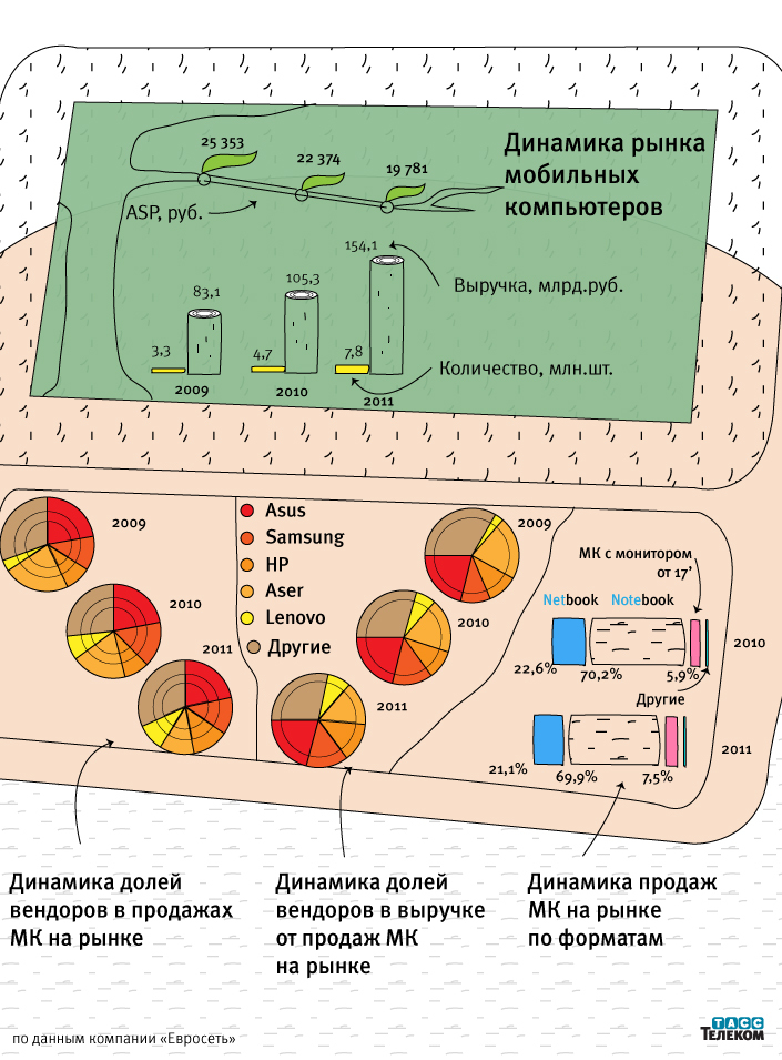 Компания "Евросеть" представила оценку российского рынка мобильных компьютеров за 2011 год.
