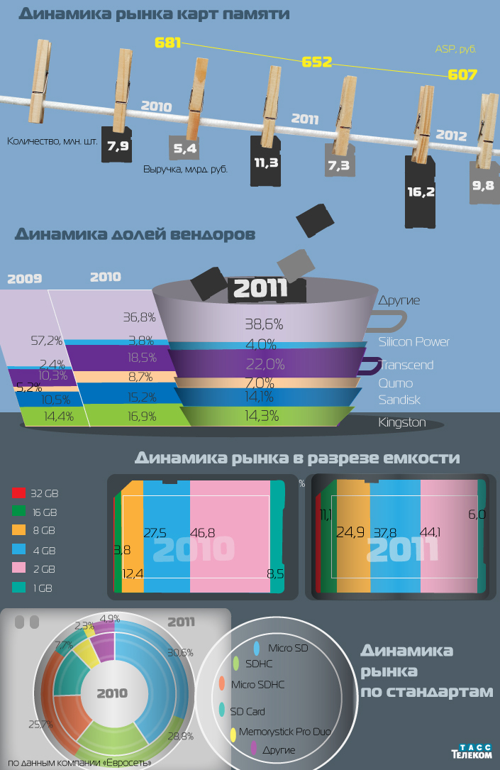 Компания "Евросеть" представила оценку российского рынка карт памяти за 2011 год.