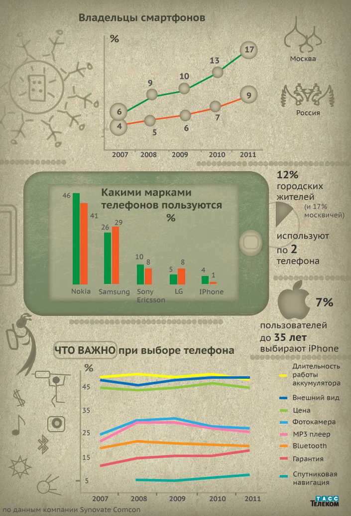 Компания Synovate Comcon представила данные исследования "Российский индекс целевых групп", в том числе - результаты опроса владельцев смартфонов.