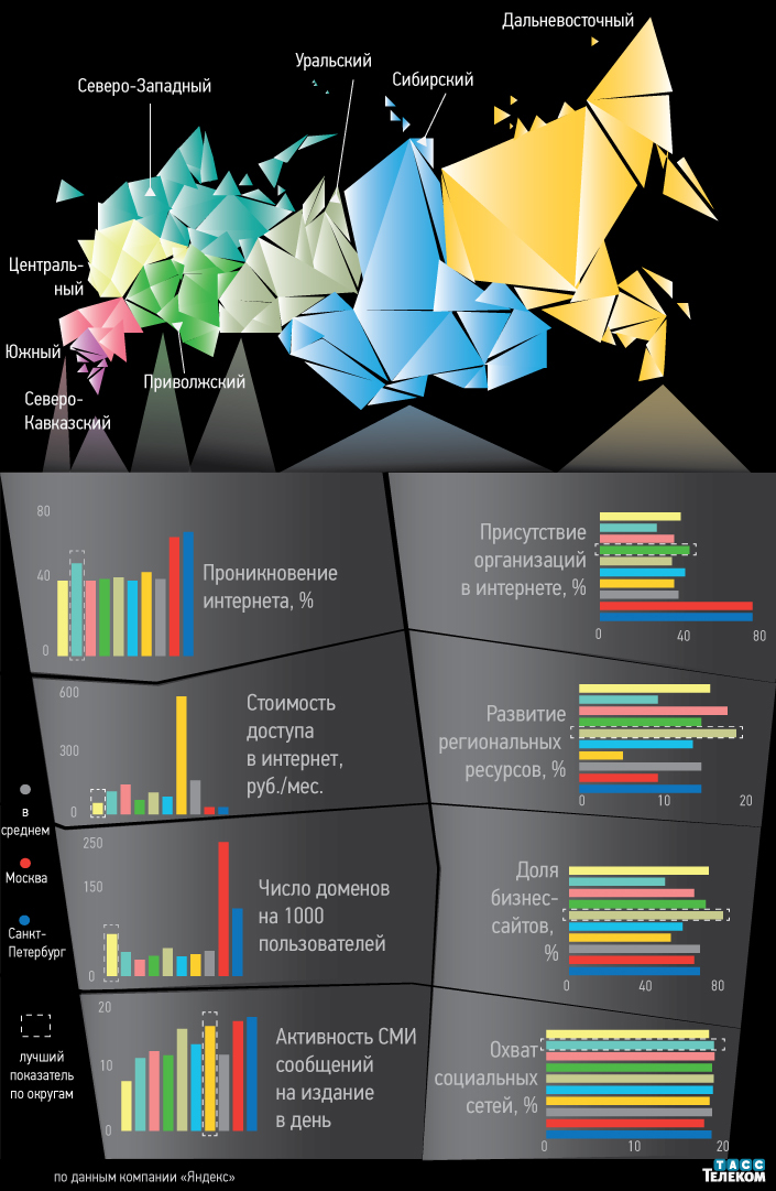 Яндекс выпустил информационный бюллетень, посвященный развитию интернета в регионах России.