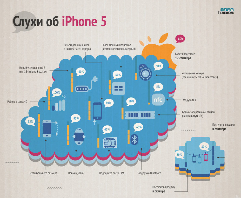 ТАСС-Телеком собрал слухи о возможных характеристиках iPhone 5, презентация которого намечена на 12 сентября
