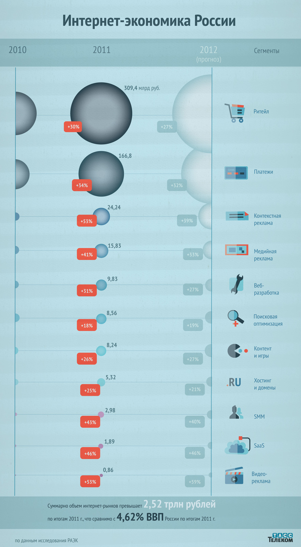 ТАСС-Телеком на основе исследования РАЭК сравнил темпы роста различных сегментов экономики Рунета