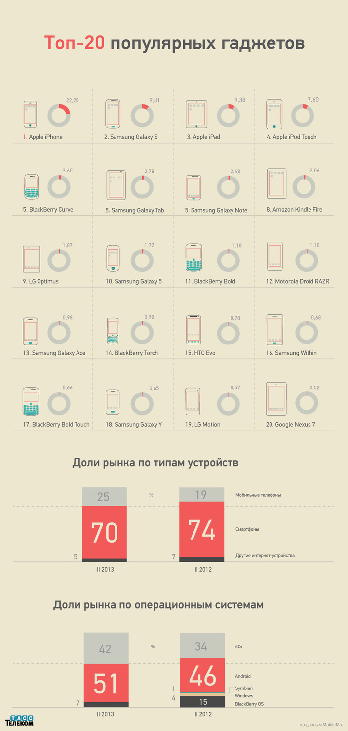 ТАСС-Телеком представляет 20 наиболее популярных устройств по версии MobileMix
