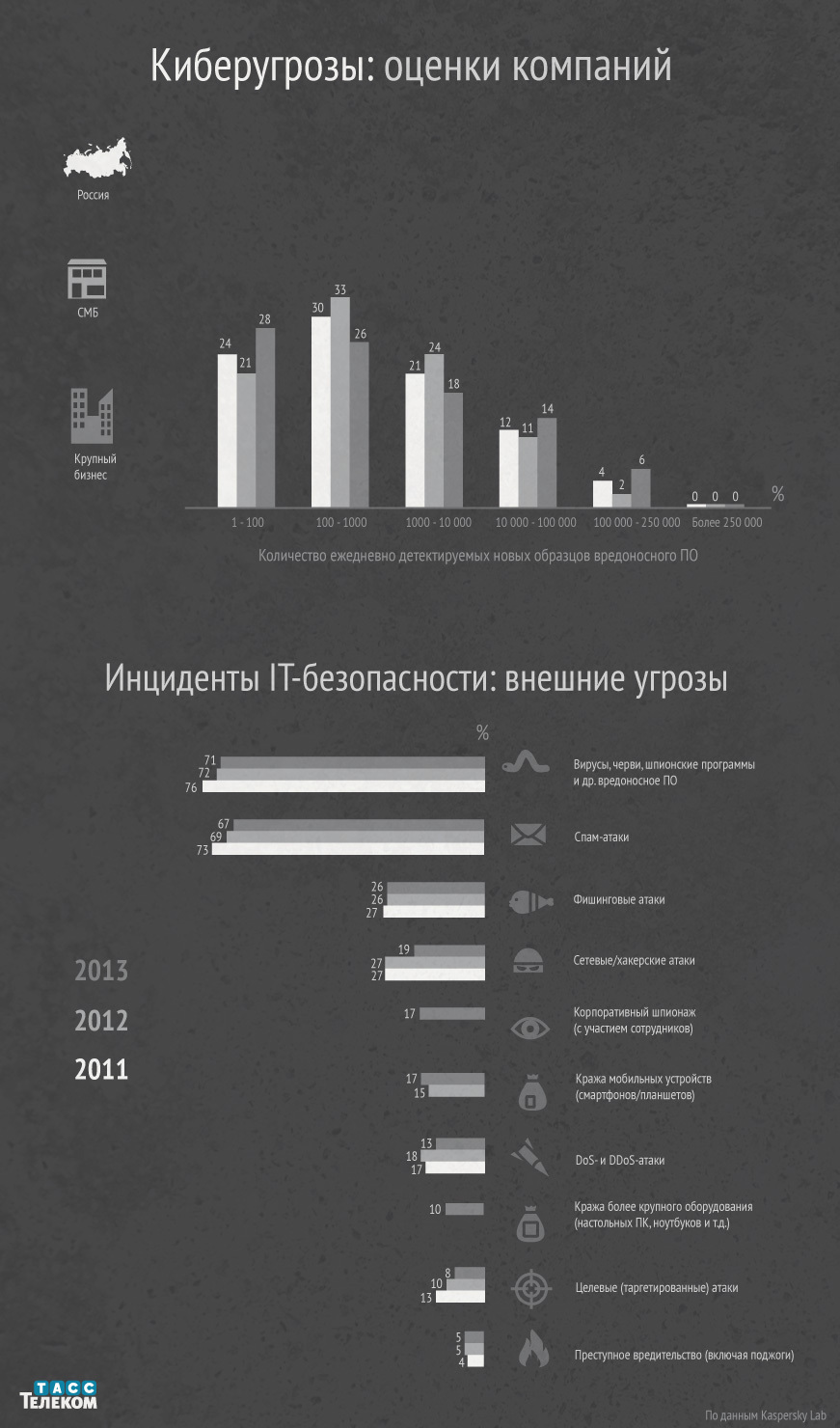 ТАСС-Телеком представляет результаты исследования "Лаборатории Касперского" того, как различные компании оценивают современные киберугрозы