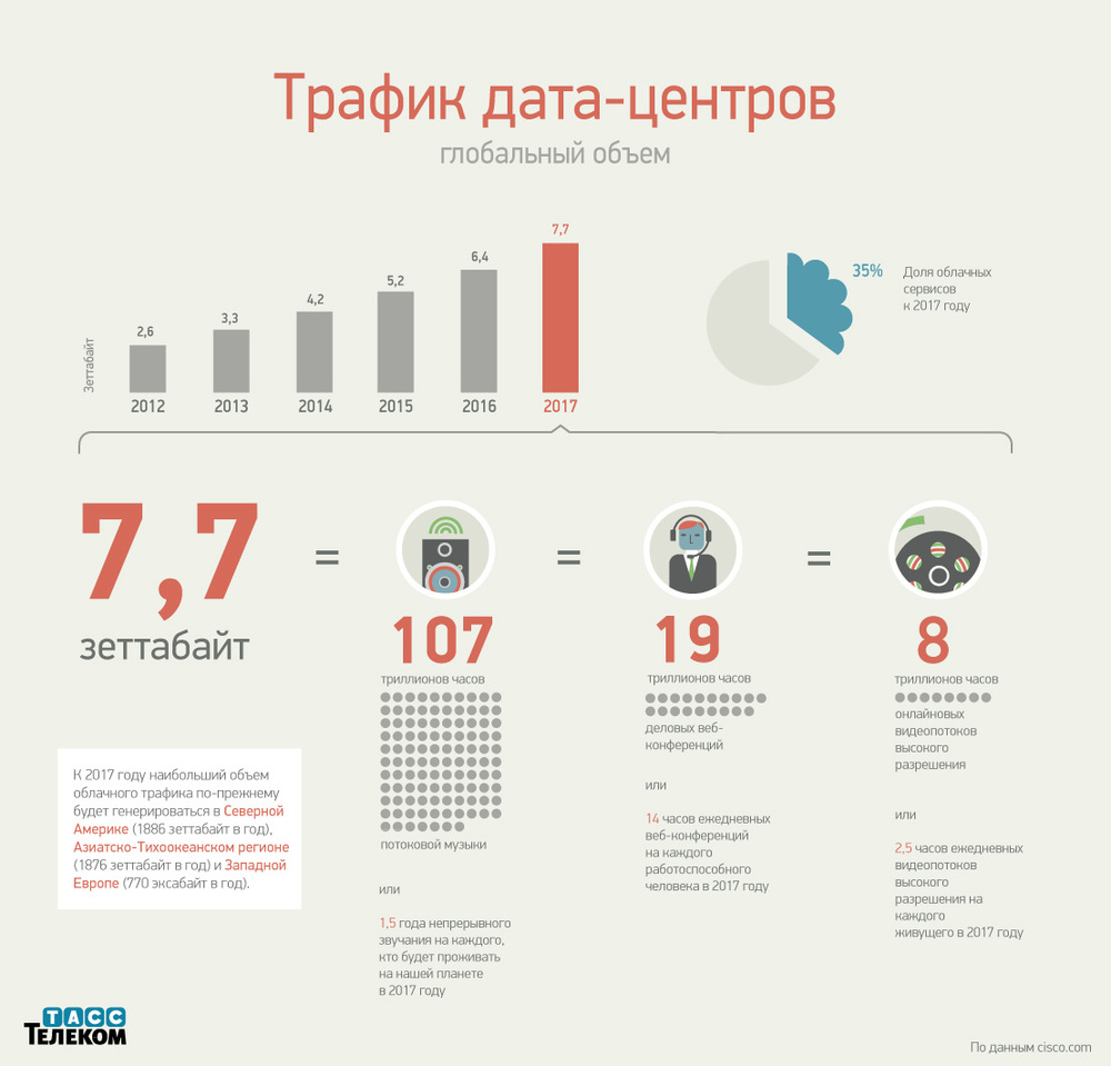 ТАСС-Телеком представляет прогнозы компании Cisco по трафику дата-центров в будущем