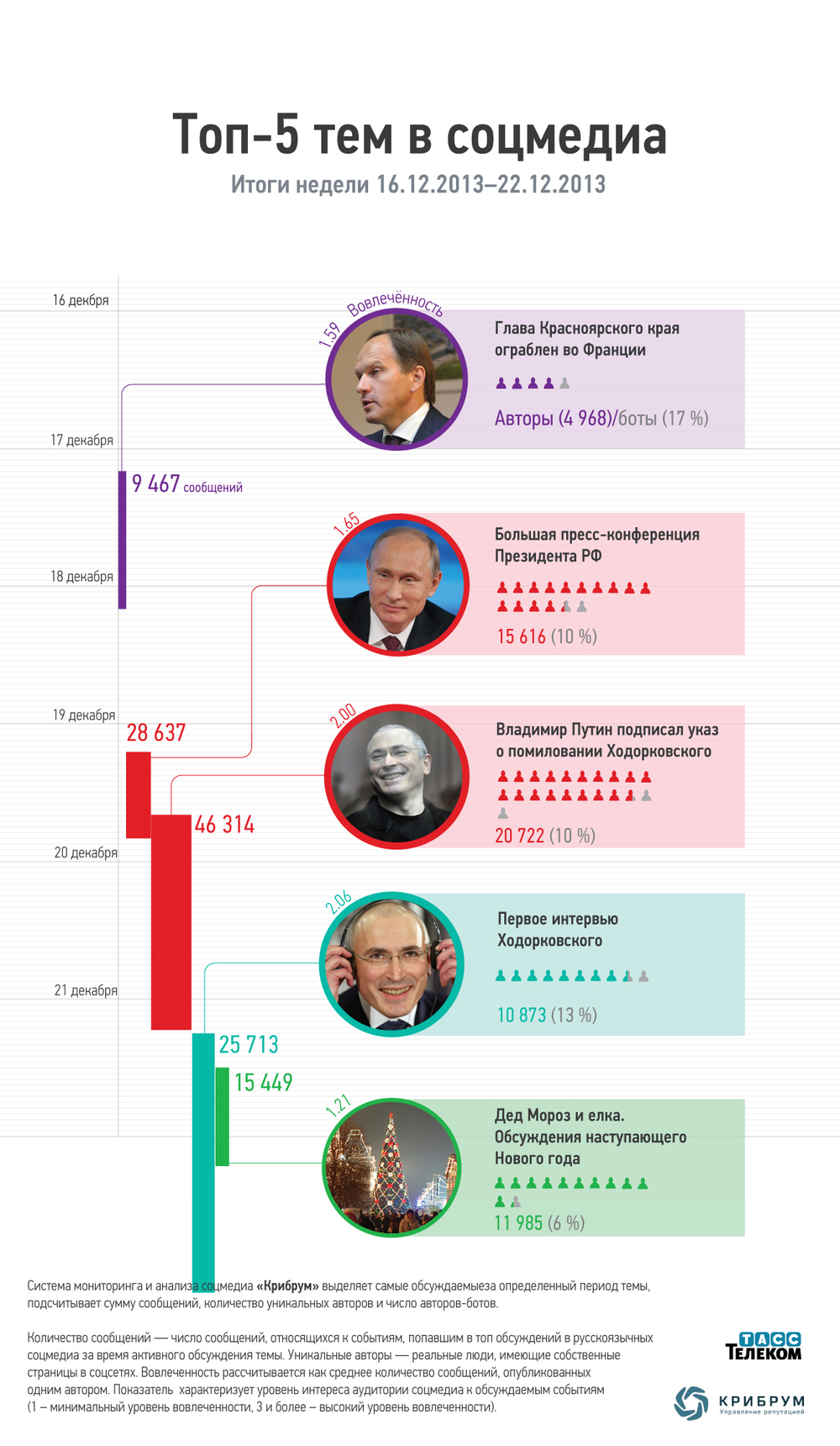 ТАСС-Телеком представляет топ-5 самых обсуждаемых в интернете тем за минувшую неделю по версии системы мониторинга соцмедиа "Крибрум"