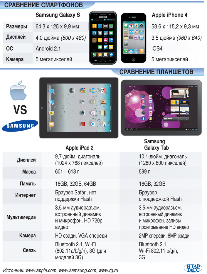 Компания Apple подала в суд на южнокорейский гигант "Samsung electronics", обвинив его в нарушении прав интеллектуальной собственности. Внешний вид, дизайн и интерфейс мобильных средств связи и планшетных компьютеров серии "Galaxy" производства Samsung, по мнению Apple, скопированы с смартфона iPhone и планшетника iPad.