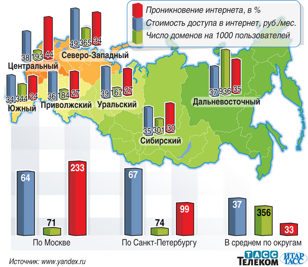Яндекс и Фонд "Общественное мнение" выпустили информационный бюллетень, посвященный развитию интернета в регионах России. По данным исследования, месячная аудитория интернета в России за 2010 год выросла на 18% и составляет 46,5 миллионов человек.