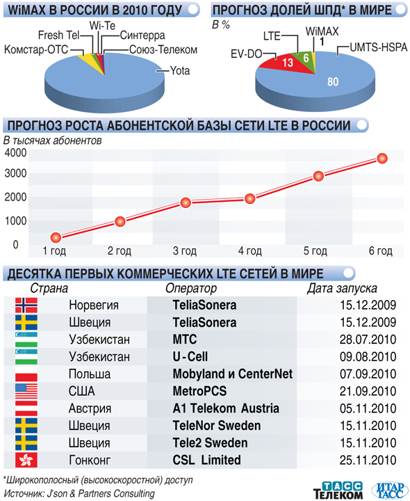 Компания J’son & Partners Consulting опубликовала исследование российского и мирового рынков 4G, согласно которому первая LTE сеть в России может быть развёрнута до конца 2011 года