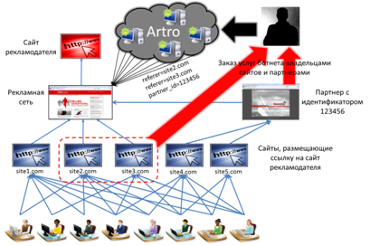 Многие сайты, заинтересованные в увеличении посещаемости своих ресурсов, пользуются услугами рекламных сетей. При этом посредник получает определенную сумму за каждого перенаправленного пользователя. Желая увеличить свой доход, некоторые владельцы сайтов, размещающих у себя рекламные ссылки, пользуются услугами ботнетов, чтобы имитировать переходы пользователей с их сайтов на рекламируемые ресурсы.