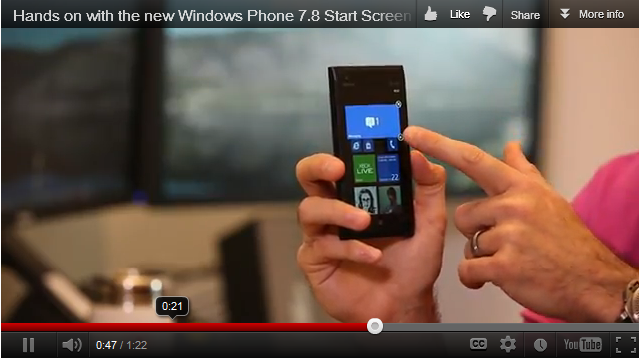 МОСКВА, 26 июня. /Корр. ТАСС-Телеком Эрик Хачатрян/. Один из разработчиков Windows Phone, Бен Рудольф, опубликовал в официальном блоге создателей мобильной ОС видеоролик, в котором демонстрируется работа одной из ранних сборок Windows Phone 7.8 на смартфоне Nokia Lumia 900.