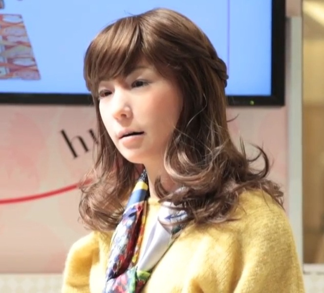 Андроид выглядит как самая обыкновенная современная японская девушка – небольшого роста (160 см) и с темными волосами. Минами-тян охотно болтает с посетителями универмага и смеется. Любой желающий может подойти к специальному сенсорному табло, расположенному рядом с девушкой-роботом, и выбрать тему для разговора. По соседству же с милашкой Минами сидит еще один андроид – копия её создателя, профессора Осакийского Университета Исигуро Хироси, который также периодически отпускает различные реплики и комментарии.