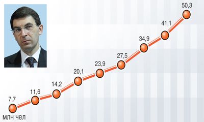 "По оценкам, которые есть у нас в министерстве, - отметил он, - порядка 50 млн человек пользуются интернетом в России, из них 36 млн - активные пользователи".
