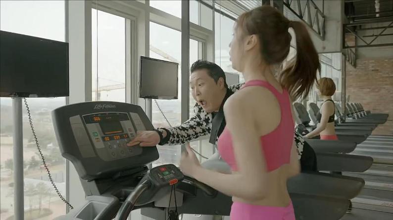 В клипе “Gentleman” репер PSY всячески "подшучивает" над женщинами, опрокидывая на них горячий кофе или выдёргивая из-под них стул.