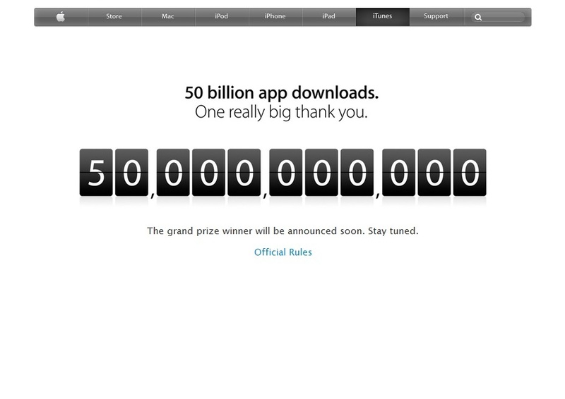 Компания даже решила устроить конкурс по этому поводу. Так, пользователь загрузивший 50-миллиардное приложение, получил подарочную карту в этом магазине на $10 тыс. Его имя станет объявлено в ближайшее время.