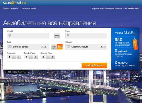 "Путешественники все чаще предпочитают планировать маршрут самостоятельно, не обращаясь к туроператорам, — отмечает Денис Танаев, руководитель проекта Путешествия Mail.Ru. — Мы создали "Авиа Mail.Ru" как способ сэкономить время для тех, кто собирается в отпуск или командировку: найти самые удобные и дешевые билеты на одном сайте за пару кликов — и посвятить оставшееся время сборам, планам и другим приятным и нужным вещам".