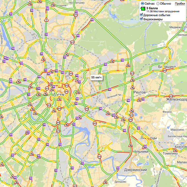 Яндекс использует также сведения официальных поставщиков дорожной информации. Например, о дорожных событиях в Санкт-Петербурге Яндексу сообщает ГАТИ, а в Зеленограде – местное ГИБДД.