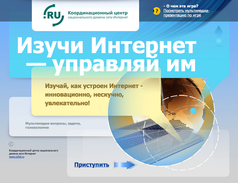 Образовательная игра, посвященная использованию интернета, была создана по заказу Координационного центра Ярославским центром телекоммуникаций и информационных систем в образовании (ЯрЦТИСО) совместно с "Силверком". В будущем игра "Изучай интернет — управляй им" будет отображаться в домене верхнего уровня .ДЕТИ – на безопасной площадке детского интернет-пространства.