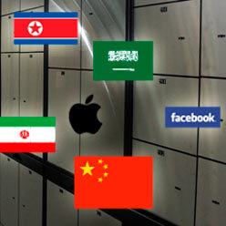 В числе стран, наиболее активно пытающихся ограничить доступ своих граждан в Интернет, Брин назвал Китай, Саудовскую Аравию и Иран. Среди компаний и социальных сетей, фактически диктующих свою волю пользователям с помощью своих собственных программных "платформ", он упомянул Apple и Facebook.